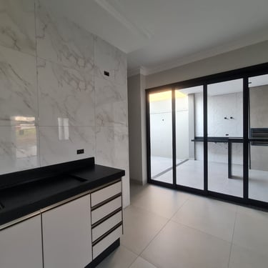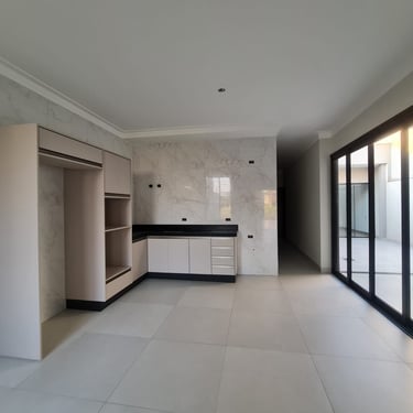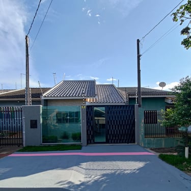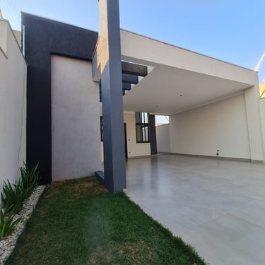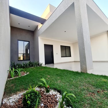 Casa moderna, com amplo espaço social integrando sala jantar/estar, cozinha e área gourmet, garagem paralela para 2 veículos, próximo a complexo educacional e fácil acesso a região nobre da cidade.